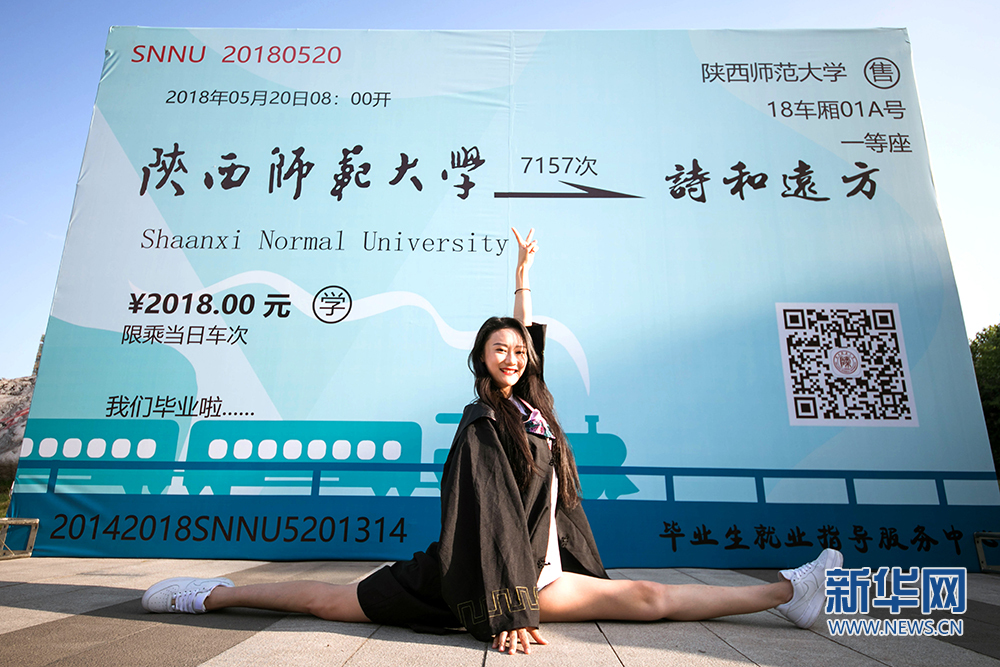 畢業生用獨特的姿態在畢業海報前留影紀念。新華網發 楊思宇攝 -