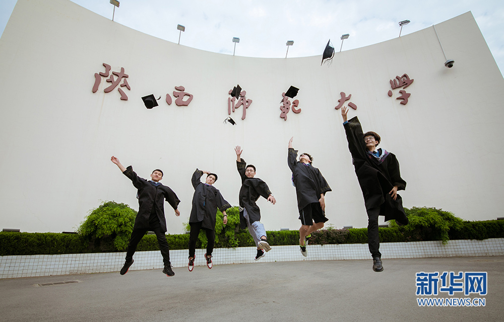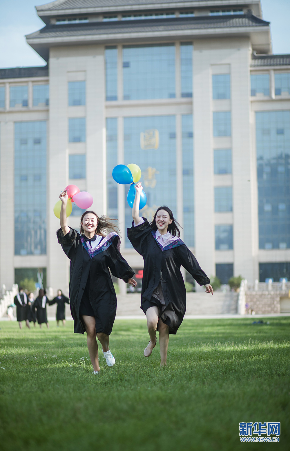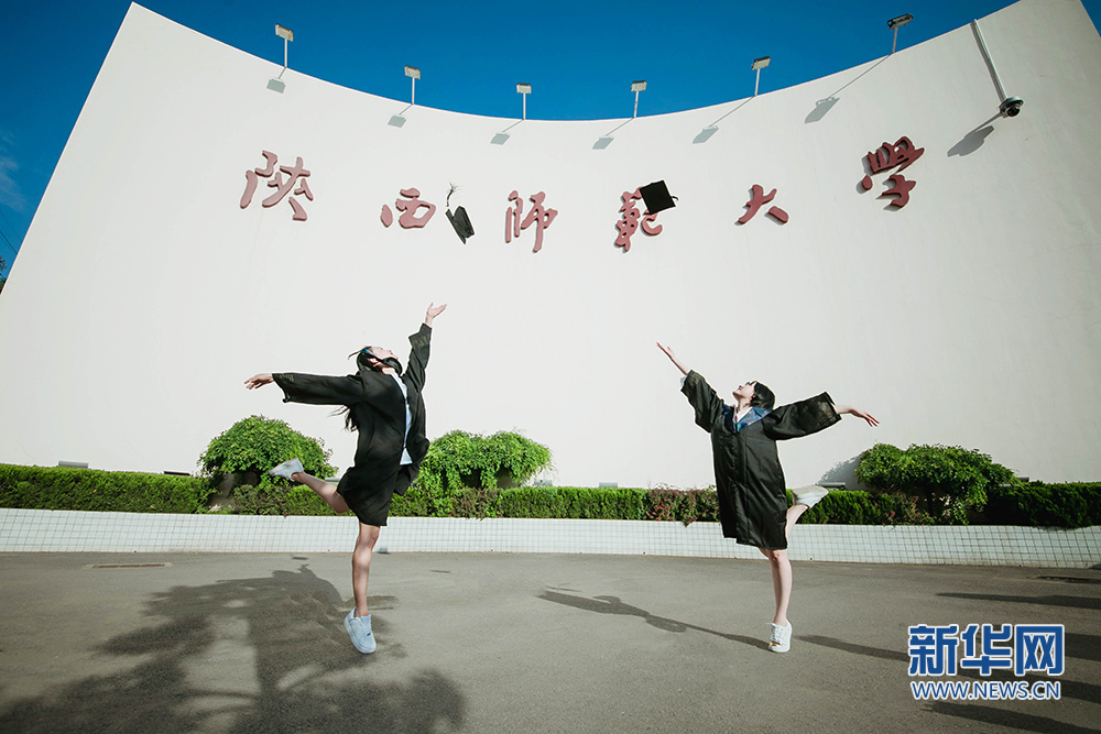 畢業生們在校門口扔起學士帽。新華網發 楊思宇攝 -