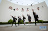 畢業生用獨特的姿態與校園合影。新華網發 楊思宇攝