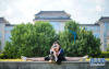 畢業生用獨特的姿態在圖書館前留影紀念。新華網發 楊思宇攝 -