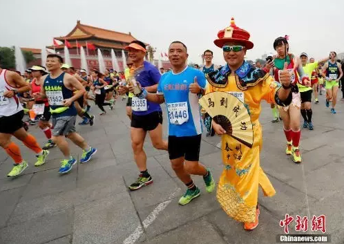 2016年北京國際馬拉松賽,選手通過天安門,圖片來源于中國新聞網