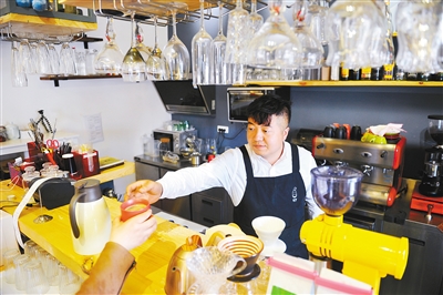 創業者堅春天與他的綠驢咖啡館 記者 翟小雪 攝