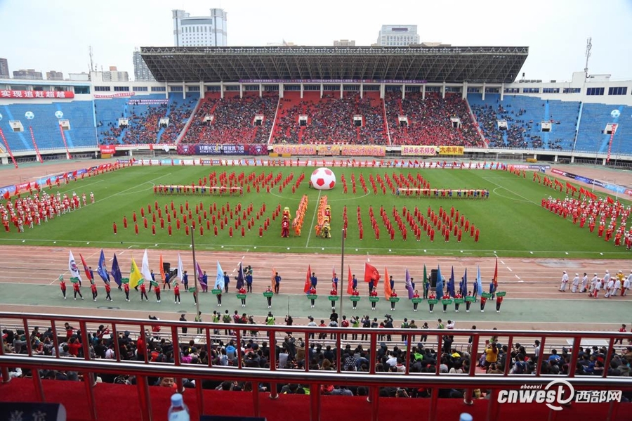 西部網訊(記者 肖陽熠 李楠 攝影 劉鵬濤 王建)11年前,三秦大地迎來2006賽季中超聯賽開幕式。11年后,一場中乙聯賽開幕式在陜西省體育場上演。4月8日下午,在“圣朱雀”20000多名球迷的注視下,2017賽季中乙聯賽開幕式隆重舉行。