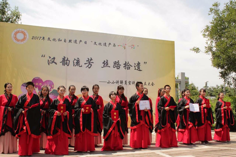 央廣網西安6月10日消息(記者雷愷 實習記者劉昱)漢景帝陽陵博物院緊緊圍繞我國首個文化和自然遺產日“文化遺產與一帶一路”主題,聯合清華大學附屬中學秦漢學校,在“文化和自然遺產日”當天(6月10日)共同組建“漢韻流芳 絲路拾遺”小小講解員宣講團,通過培訓、初選、現場展示,小小講解員進學校等系列活動,傳播文化遺產知識,弘揚優秀傳統文化。