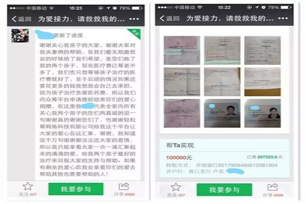 “輕松籌”和“愛心籌”是朋友圈比較活躍的捐款平臺。打開“輕松籌”主頁,掃碼即可注冊登錄,填寫個人基本信息、籌款金額、籌款項目、籌款期限、醫(yī)院診斷證明照片和現(xiàn)有財產(chǎn)等信息即可發(fā)起項目,前后不超過20分鐘。“愛心籌”平臺設(shè)有“推薦病友發(fā)起獎現(xiàn)金”的欄目,推薦人不用甄別即可自薦,還可以為別人(病人)發(fā)起籌款,籌款達到一定數(shù)額推薦人自己可得到現(xiàn)金獎勵。當下網(wǎng)絡(luò)籌款逐漸成為趨勢,如果捐款平臺只圖用戶數(shù)量增加,忽視鑒別求助信息的真?zhèn)巍⒎潘蓞⑴c者的誠實甄別,實踐中,缺乏嚴格審核即發(fā)布愛心捐助信息是虛假籌款信息泛濫的原因之一。