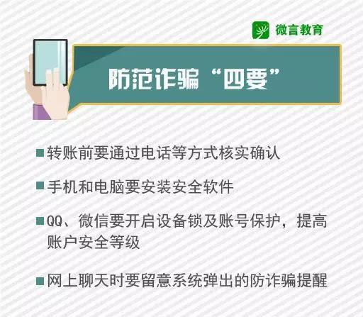 合理利用網絡,合理安排時間,不沉溺網絡;謹防網絡詐騙、遵守網絡道德;保護好財產安全,不沉迷網絡和電子游戲,對不熟悉的網絡游戲、直播、QQ群、微信群、貼吧不接觸不參與。
