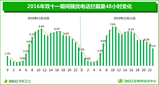 圖1:雙十一期間360手機衛士平均每天攔截的騷擾電話多達1.6億次