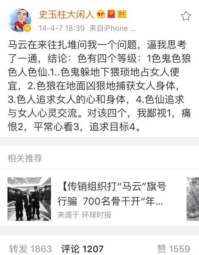 這次兩人在人性方面很談得來,馬云發現,史玉柱對人性特別是中國的人性有著極其深刻地洞察,而史玉柱同樣也對馬云的管理和深刻思想非常認可。在史玉柱的微博中,我們也看到,他經常提及馬云給他發的提問,而很多都是涉及人性層面的探討。