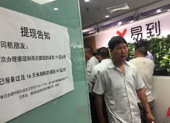 今年4月易到出現提現困難的情況后,易到承諾,愿意選擇線下提現的司機在公司登記后,16個自然日后賬戶金額將直接打到司機的銀行卡上,但很多司機到期后并未收到款項,所以只能選擇到公司要賬。