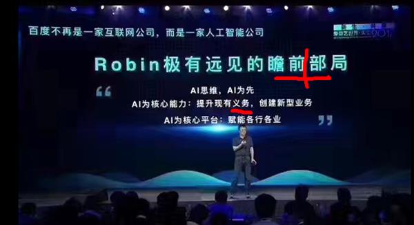 “PPT烏龍事件”引起廣泛議論,畢竟這不是百度第一次栽在PPT上。百度也在官微上回應(yīng)稱由于工作流程的失誤,陸奇先生演講所使用的PPT是用來測試視頻是否流暢的測試版,而非最終正式版本。鳳凰科技