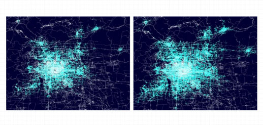 圖2 拼車(左)和非拼車(右)的空間分布