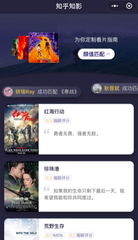 4月1日,知乎依托自身在電影領(lǐng)域的內(nèi)容、數(shù)據(jù)優(yōu)勢,面向影迷們推出了“知乎知影”小程序。