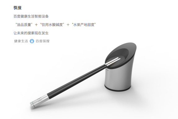 不僅如此,百度筷搜背后也有著超前的搜索理念體現。原來我們對食品安全或者健康有疑問的時候,只能通過文本方式去搜索,現在通過筷搜可以直接采集信號做搜索,而每一次對食品安全和健康方面的檢測都是一種新型的搜索。