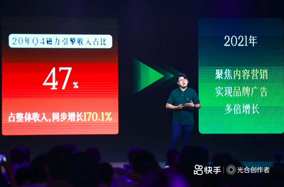 4月22日,快手光合創作者大會在廣州開幕。快手高級副總裁馬宏彬亮相,全面闡釋了創作者私域流量的商業價值。馬宏彬在會上透露,創作者已成為鏈接品牌和用戶的關鍵橋梁,過去一年,品牌投放需求以及創作者廣告收入均實現了高速增長,2021年,快手磁力引擎(即快手商業化)將幫助創作者實現100億廣告收入。