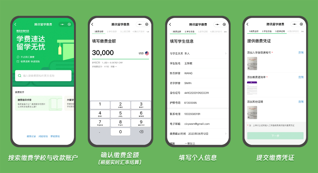 近日,由騰訊金融科技推出的“微匯款”微信小程序正式上線“留學繳費”功能,支持美國、英國、加拿大等國家和地區的數百所院校,為廣大留學生提供便捷、安全的留學繳費服務。