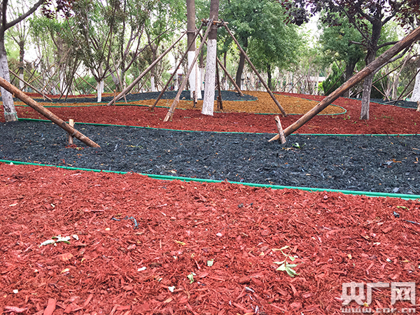 昨天,天津市水上公園面積約2500平方米的大型林下景觀全面向游人開(kāi)放。該景觀使用新型環(huán)保材料“有機(jī)覆蓋物”,依據(jù)地勢(shì)環(huán)境,整體采取流線波浪狀逐層展開(kāi),局部點(diǎn)綴“彩虹環(huán)”。