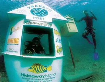 旅行初見:瓦努阿圖對大多數(shù)游客來說比較冷門,但對于潛水愛好者來說,它獨一無二的潛水條件讓人欲罷不能,被譽(yù)為“潛水天堂”。在瓦努阿圖的外島上,在海平面3米以下坐落著一個水下郵局,這是世界上唯一一家水下郵局。這個郵局是一個面積1平方米的鐵質(zhì)小房間,里邊的郵和郵筒一應(yīng)俱全,所投遞的物品只能是從小島入口柜臺上買的防水明信片,還有專門的水下郵差專門收集這些信件。對于潛水客來說絕對是難得的經(jīng)歷了。