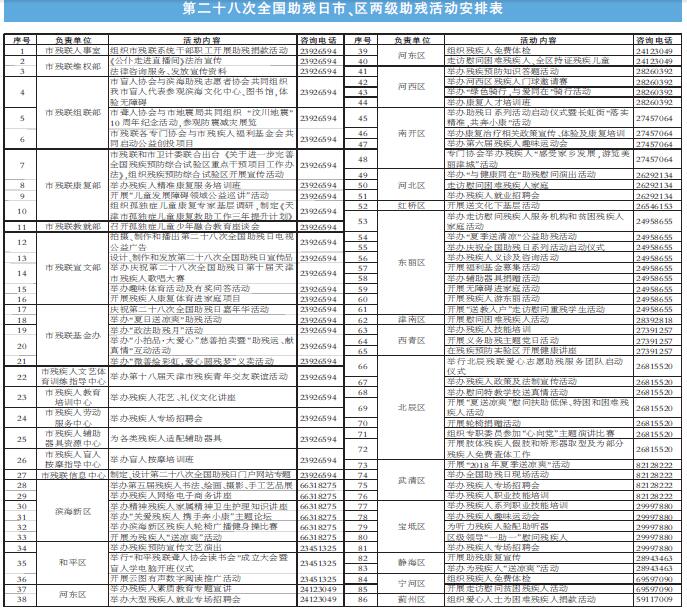 據(jù)介紹,目前全市共有57萬殘疾人,殘疾朋友是社會(huì)大家庭的重要成員,需要政府和社會(huì)各界格外關(guān)心。今年全國(guó)助殘日活動(dòng)主題是“全面建成小康社會(huì),殘疾人一個(gè)也不能少”,為廣泛深入開展全國(guó)助殘日活動(dòng),天津市將圍繞主題組織開展近百項(xiàng)助殘活動(dòng),并將每一項(xiàng)活動(dòng)相關(guān)信息對(duì)外公布,方便殘疾朋友參與其中,受益其中。(記者 韓雯)