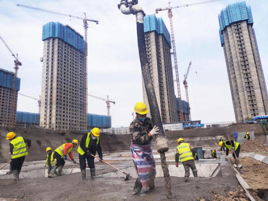 砼工班組在澆筑混凝土(央廣網發 中建三局供圖)