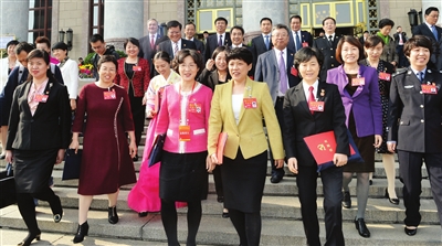 圖片新聞,昨日,中國共產黨第十九次全國代表大會閉幕,天津代表團代表滿懷信心走出人民大會堂。本報記者 杜建雄 攝