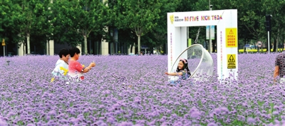 泰達(dá)城市廣場(chǎng)兩萬(wàn)多平方米的大花園升級(jí)后,從空中俯瞰可見(jiàn)“泰牛”圖案,中間通道還增設(shè)了精巧的花式秋千,讓游客流連忘返。本報(bào)記者 王濤 攝
