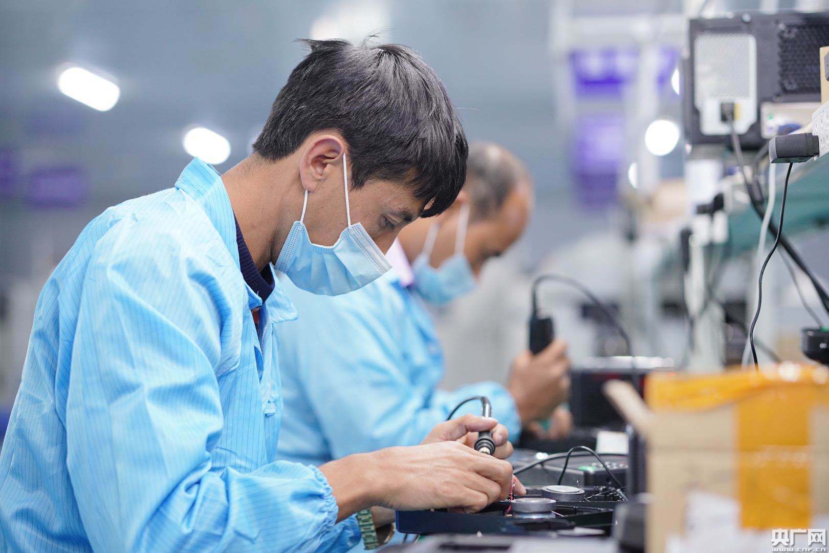 數字電子示范區內企業的工人正在加工電子設備(央廣網發 通訊員馮浩然 攝)