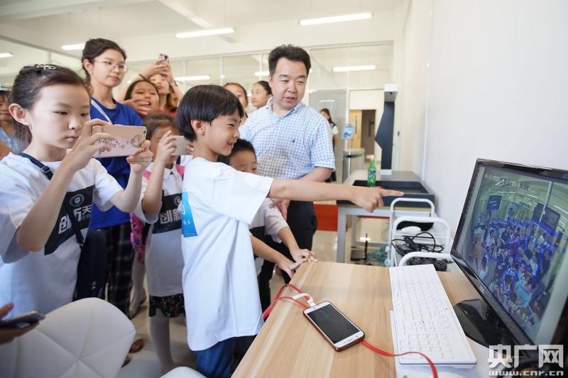 小朋友們參加了“大數(shù)據(jù)與智能”海棠論壇,感受了高端學(xué)術(shù)論壇的氛圍。孩子們參觀了數(shù)字媒體技術(shù)實(shí)驗(yàn)室和物聯(lián)網(wǎng)實(shí)驗(yàn)室等“智能”實(shí)驗(yàn)室,并在研究生們的帶領(lǐng)下體驗(yàn)了刷臉購物、操控?zé)o人車、飛機(jī)模擬駕駛,還嘗試隔空取物、參觀了數(shù)字博物館,并在電腦上觀看了腦電波信號(hào)可視化分析過程。(攝影 王曉明) -