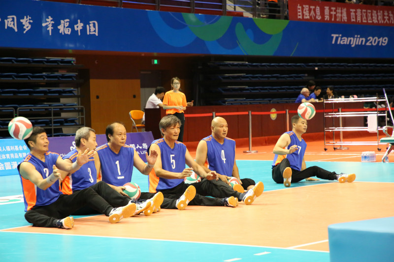 央廣網天津8月31日消息(記者劉陽)全國第十屆殘運會暨第七屆特奧會在天津順利召開,在坐式排球賽場上天津代表隊最年長男選手61歲俞根柱身著1號球服,在賽場上為榮譽揮灑汗水。