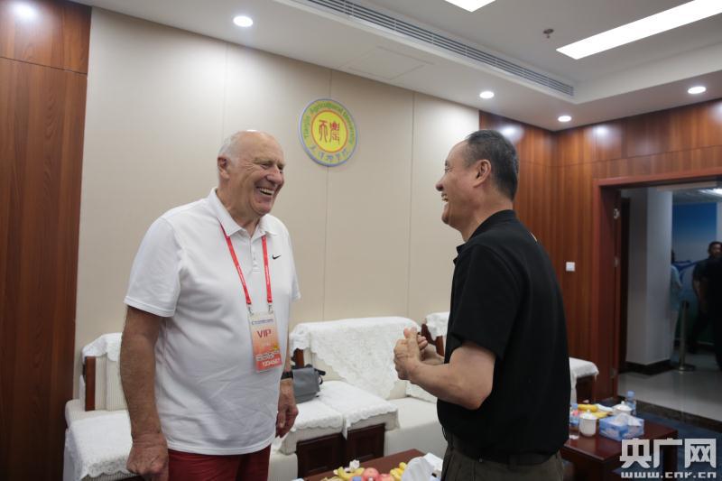 央廣網天津9月2日消息(記者劉陽 褚夫晴 通訊員鄒青穎)9月2號上午,國際田聯名譽副主席,德國田徑協會名譽主席、德國Tubingen大學教授、Helmut Digel博士在十三屆全運會賽會競委會執行主任、國家體育總局武術管理中心主任張秋平同志陪同下觀看了在天津農學院舉辦的第十三屆全運會武術散打比賽。