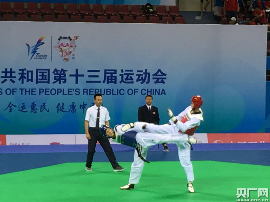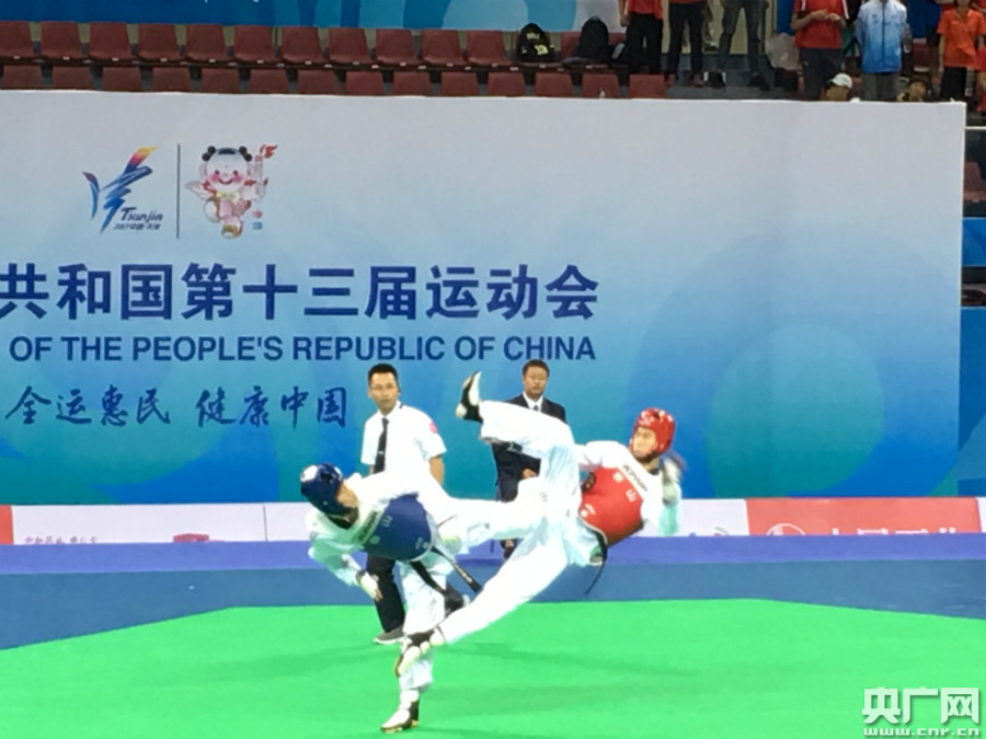 5日晚,第十三屆全運會跆拳道 項目決出兩塊金牌,在男子68公斤級決賽中,里約奧運會冠軍、新科世 錦賽冠軍趙帥8:5力克廣東趙攀鋒,首奪該項全運會金牌。青海劉福寧和河北宋國棟獲得季軍。