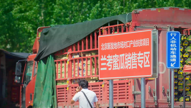 圖為北京新發地市場對口產業扶貧項目蘭考蜜瓜銷售專區