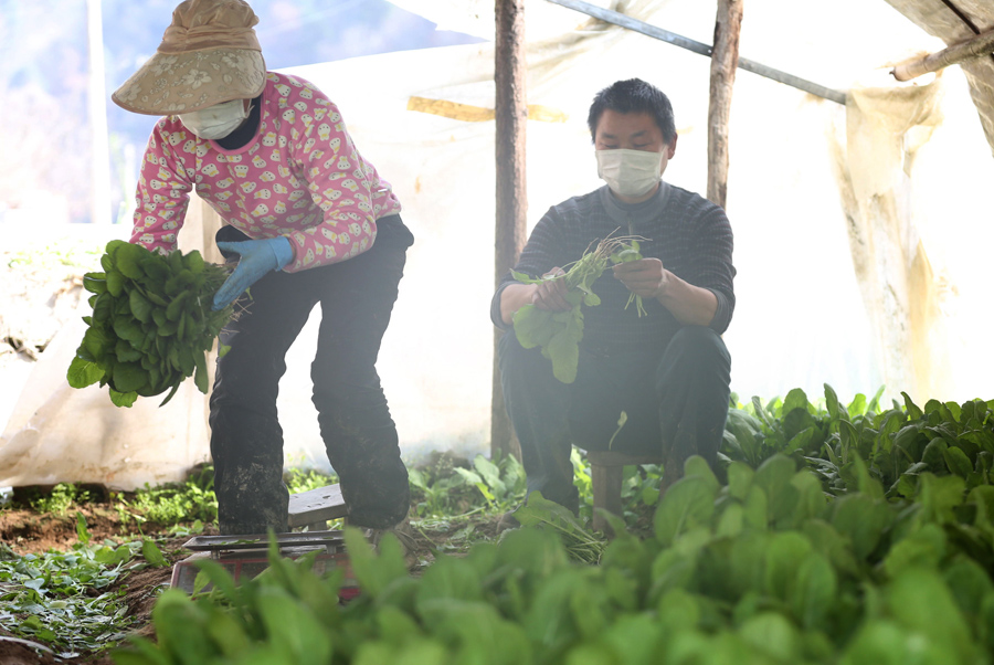 15日,湖北省十堰市張灣區花果街辦安溝村村民正在田間澆地培墑撒種、采收蔬菜。該村有集中連片土地250余畝,是城區鮮菜主要種植基地,為確保農業生產和城市供應,該村以疫情防控為底線,采取統購農資、分散錯時等辦法有序開展春播生產,確保將疫情損失降至最低。(區融媒體中心 劉濤 通訊員 鄒瀟瀟)