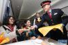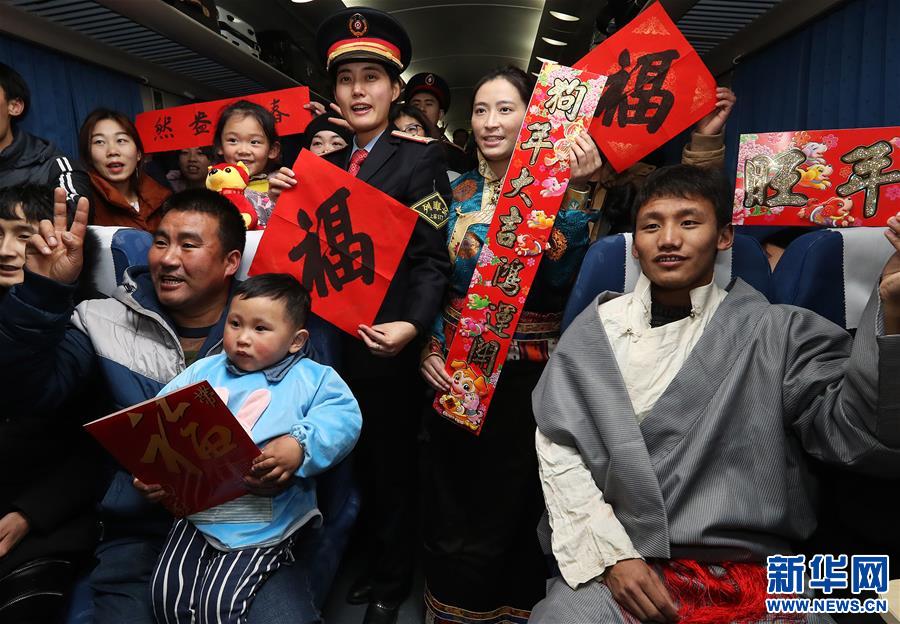•      2月7日,乘務(wù)員在列車上為返鄉(xiāng)的同濟(jì)大學(xué)學(xué)生送上餐食。新華社記者 陳飛 攝   近日,在上海至拉薩Z164次列車上,乘務(wù)員與旅客開展了“迎新春、送福字、把吉祥美好帶回家”活動(dòng),營造暖心的旅程。