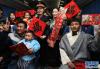 •      2月8日,乘務(wù)員在列車上為返鄉(xiāng)旅客送上春聯(lián)和新春的祝福。新華社記者 陳飛 攝