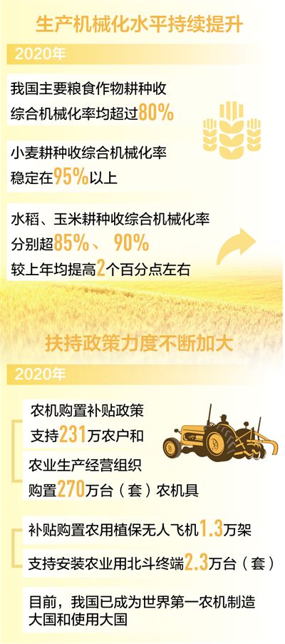 沒有農業機械化,就沒有農業現代化。農業農村部數據顯示,當前我國農業生產進入機械化主導的新階段,各主要糧食作物耕種收綜合機械化率均超過80%。從山區縱橫馳騁的微耕機,到黑土地上轟鳴的無人智能插秧機,再到自動運行的“植物工廠”,新農機促進農業生產效率提升,為鄉村振興提供了重要科技支撐。