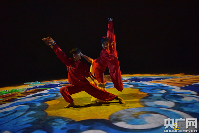 節目使用優秀插畫團隊手繪 “春節元素”原創插畫,然后制作成動畫使這些元素流動鮮活起來,最后通過光影投影技術將動畫與中國風舞蹈結合在一起,在手繪年畫的精美光影中,由舞蹈演員根據動畫和音樂的變化進行現場演繹,最終呈現出多彩豐富的春節立體畫面。