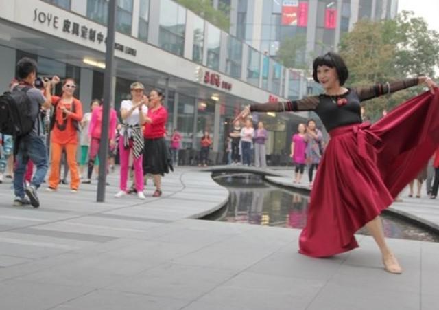重陽節前夕,北京一百多位平均年齡在65歲的老年人唱著《時間都去哪兒了》、《等你愛我》等流行的歌曲,跳著《小蘋果》閃現在京城時尚青年聚集的三里屯,開展了一次歌舞“快閃”。希望以此展現自己依然蓬勃的活力和向上的精神狀態,呼喚社會更多關注老年人群體。