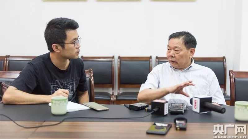 記者鄭澍在采訪紫南村黨支部書記潘柱升