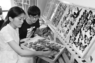 兩年后,彭華的女友呂曼曼從西北農林科技大學研究生畢業后,緊隨彭華也來到宿城區雙莊鎮成為一名大學生村官。她為彭華加工制作的工藝品命名為“古枼蝴蝶藝術品”,并為產品申請了注冊商標,還拿出自己的3萬元“壓箱錢”,把“古枼蝴蝶藝術品”搬上了互聯網,在淘寶和阿里巴巴上開設了2個網店,創造性地在淘寶上開展蝴蝶標本租賃業務,F如今,淘寶店已經小有名氣,積攢了很多忠實客戶,每個月交易額都在3萬元以上,可算是蝴蝶標本網店里的佼佼者。