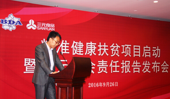 本網(wǎng)訊(記者申相磊) 9月26日,“精準健康扶貧項目啟動暨三元企業(yè)社會責任報告發(fā)布會”在河北省廊坊市舉行。河北省扶貧基金會秘書長李士宏、北京市奶業(yè)協(xié)會秘書長廖晨星、北京三元食品總經(jīng)理陳歷俊等出席活動。