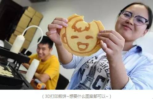 就在上個(gè)星期,青島的一家咖啡酒館還舉辦了一場(chǎng)3D打印體驗(yàn)活動(dòng),活動(dòng)的一個(gè)環(huán)節(jié)就是顧客自己設(shè)計(jì)、打印3D卡通煎餅。我看了一下,這款煎餅打印機(jī)工作原理和普通打印機(jī)差不多,只不過(guò)是將墨水換成雞蛋面粉,將紙張換成一個(gè)烤爐。按下開(kāi)關(guān),機(jī)器料瓶就像畫(huà)筆一樣,在烤盤(pán)上面畫(huà)煎餅了。
