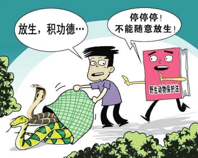 新法規定,隨意放生野生動物,造成他人人身、財產損害或者危害生態系統的,依法承擔法律責任。林業部門表示,外來物種放生問題,以往執法部門只是規勸,以后就更加有約束力了。該規定還意味著,選擇放生地點前,需經過評估,適合放生才能放;而以往放哪里怎么放沒有規定,有的地方就曾出現有人放生一大批蛇,讓附近居民很擔心的事情。