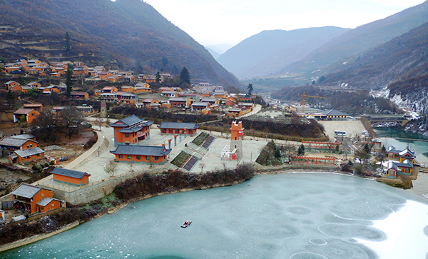 這是實施生態(tài)旅游扶貧后的甘肅省隴南市宕昌縣官鵝溝景區(qū)內一處民俗村(2016年12月1日攝)。