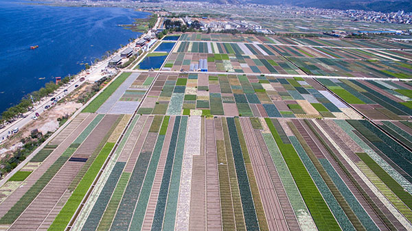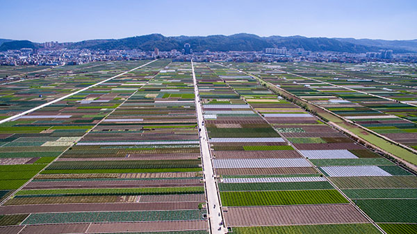 時下正值農忙時節,云南省玉溪市通海縣秀山街道大樹社區的農作物長勢喜人,秀美春色與多彩田園組成一幅美麗的畫卷。
