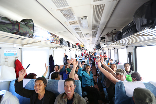 5月9日,插秧客乘坐插秧專列前往墾區。