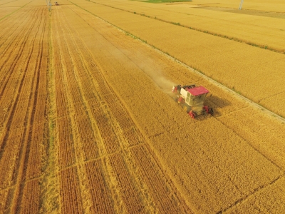在河北省望都縣國家級小麥綠色高產高效示范區,小麥迎來豐收。與非示范區相比,每畝節約用水51.6立方米以上,產量增加58公斤以上,節本增效約213.89元。 本報記者郝凌峰攝