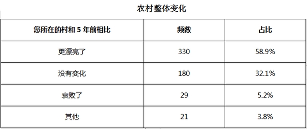 具體而言,有超過一半受訪者認為所在村與5年前相比變得更加漂亮;只有5.2%的受訪者表示所在村與5年前相比變得衰敗了。