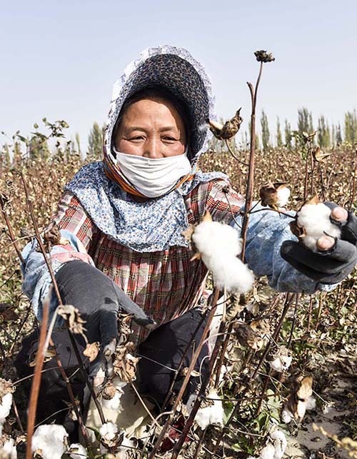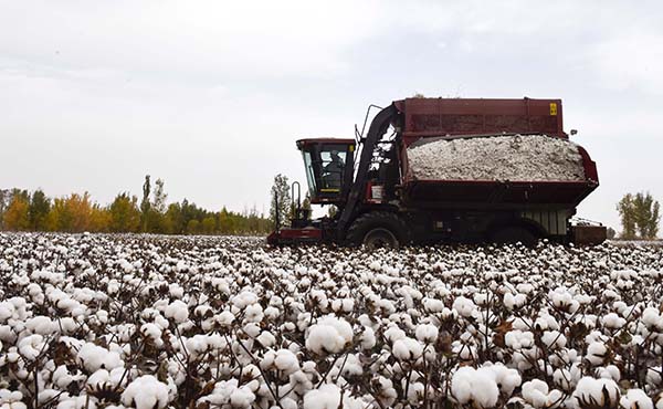 新疆塔里木盆地棉花采摘進(jìn)入尾聲