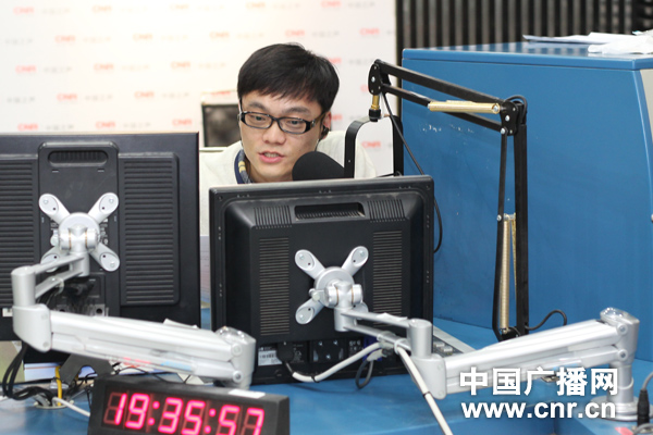 第十三期《中國大舞臺》節目主持人胡凡在直播中(中廣網記者涂傲攝)