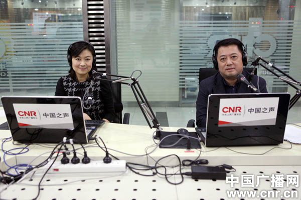 3月17日呂嘉(右)、高雁(左)做客中國之聲直播間(中廣網(wǎng)記者 李雪南攝